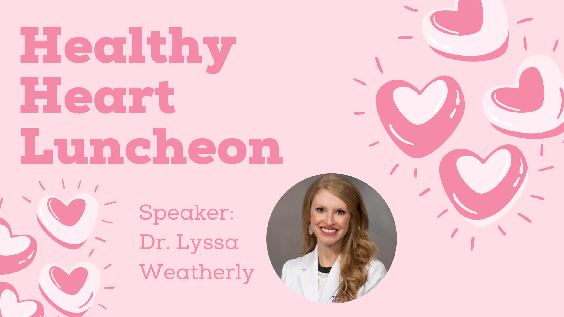 Join us for the Healthy Heart Luncheon with speaker Dr. Lyssa Weatherly, lunch provided by Gina Moreman, and door prizes.
