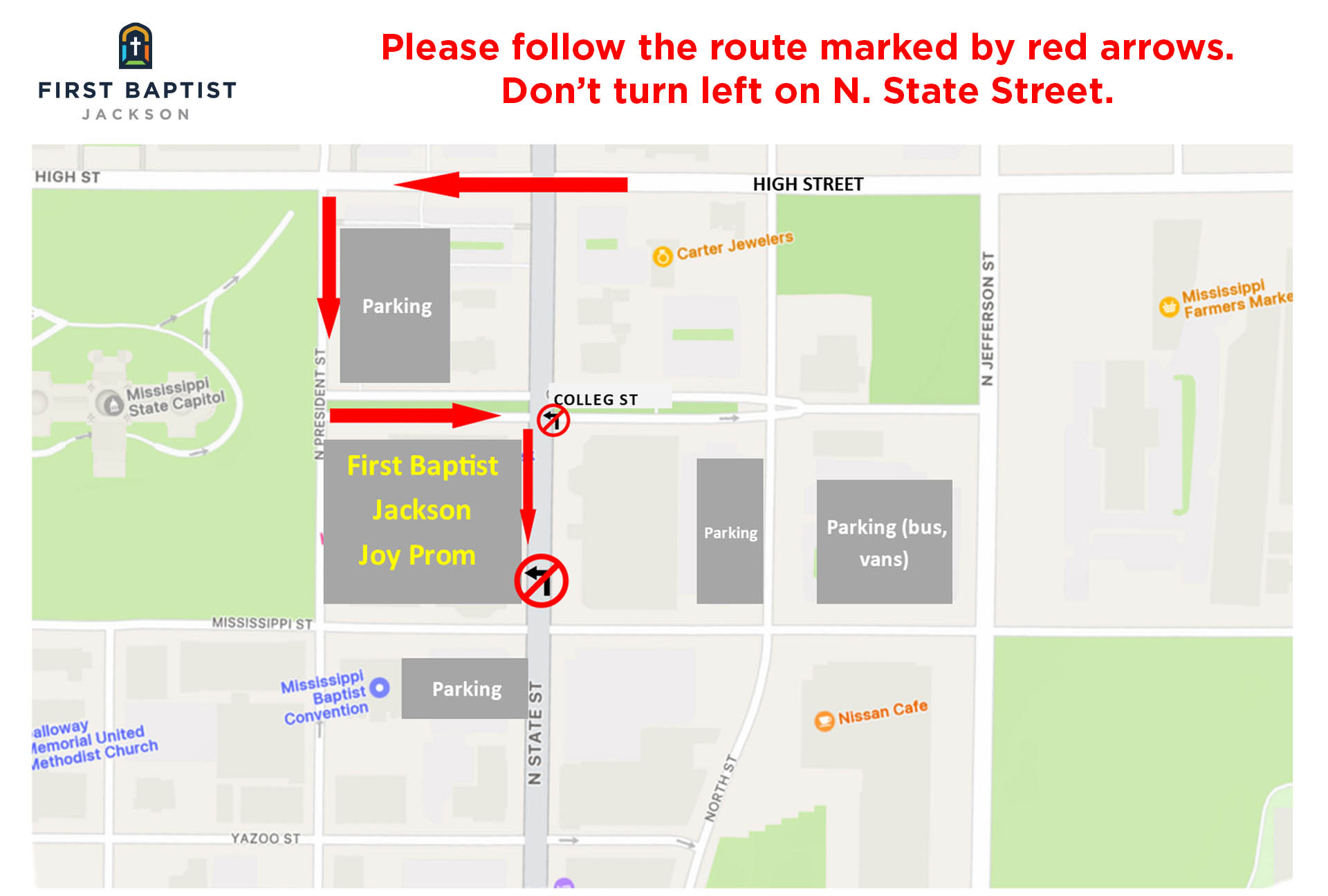 Important information for arriving at Joy Prom